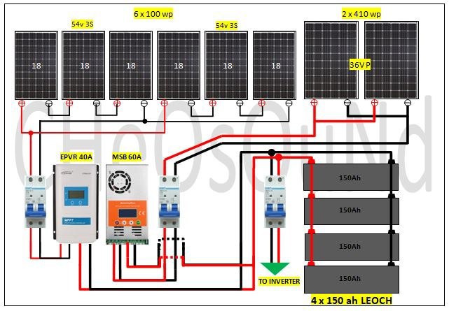 Tunjukkan kurva I / V dari susunan PV, bersama dengan kisaran MPPT, voltase, arus, dan keterbatasan inverter saat ini.
