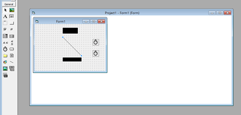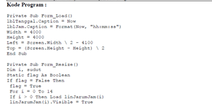 propertis diatur sesuai yg ditabel maka hasilnya seperti gambar disampingnya.setiap form , label dan line dan juga timer harus dirubah propertiesnya..