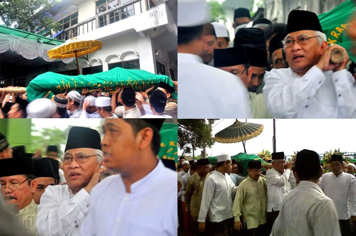 Lautan manusia turut mengantarkan jenazah almarhum Romo KH. Ahmad Warson Munawir. Tampak seorang ulama besar NU yang merupakan teman karib almarhum, Gus Mus, ikut mengangkat keranda jenazah almarhum menuju ke maqbarah. Alam pun ikut menangis atas kepergiannya.