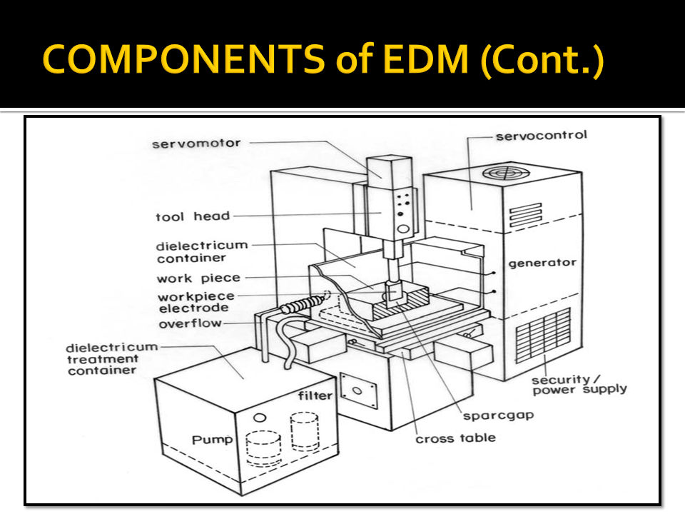 Proses EDM dilakukan dengan sebuah sistem yang mempunyai dua komponen pokok yaitu mesin dan power supply.