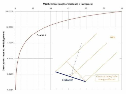 Tahukah anda bahwa saat ini terutama di akhir bulan juni posisi matahari berada di titik terjauh di sebelah utara, dan terutama buat yg di domisi di jawa, bali, ntt & ntb sudut matahari sebesar 30° dan loss yg timbul karena miss alignment ini sebesar 15% di tambah suhu yg panas menyebabkan produksi PV menurun walaupun kondisi cerah. Untuk mengurangi loss ini bisa di pasang treaker utara – selatan, pendingin PV, atau jika tidak bisa pasang treker, sudut PV di pasang menghadap utara 10°.