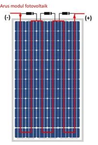 Contoh Gambar diatas mengilustrasikan modul fotovoltaik dengan 72 sel yang dihubungkan secara seri dan dilindungi oleh tiga dioda bypass