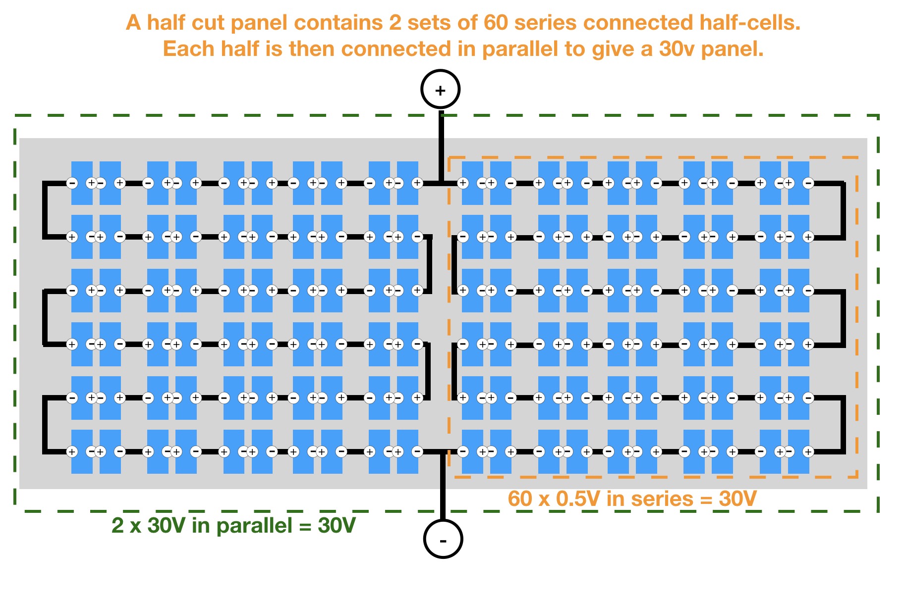 Teknology Halfcut cell panel surya apakah itu ? » half-cut-panel-wiring