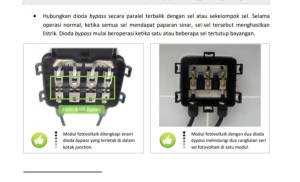 - Pasang dioda bypass. Kabar baiknya. Dioda ini kebanyakan sudah terpasang pada kotak hitam dibelakang PV. Jika memang tidak ada maka bisa pasang sendiri sesuaikan kondisi kemampuan PV tersebut. Pengaruh dari dioda bypass dipasang untuk menghindari adanya hot spot akibat dari kondisi dimana salah satu sel dalam satu panel surya ditutupi oleh bayangan dari benda sehingga tidak mendapatkan radiasi sinar matahari.