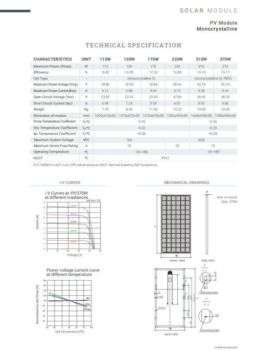 Maximum Power Voltage Vmax (V): 29.4/29.8/30.1/30.4/36.8/37.5 (Daya Maksimum Tegangan Vmaks)
