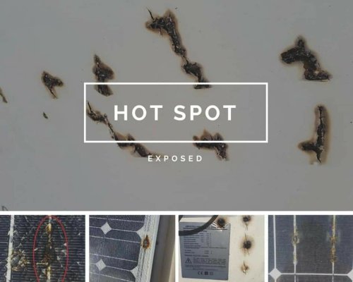 Hot spot adalah kenaikan suhu lokal di dalam panel surya yang menyebabkan efek buruk pada efisiensi dan degradasi modul surya. Jika Anda melihatnya di panel surya Anda segera hubungi installer Anda. Hot spot tidak stabil dan pada akhirnya akan menyebabkan kegagalan bencana.