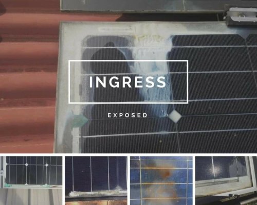 Ketika kelembaban menembus lapisan pelindung modul surya lalu melakukan kontak dalam sirkuit listrik internal. Maka Sangat mempercepat degradasi panel dan akhirnya mengarah ke kegagalan produksi surya. Ingress terutama disebabkan oleh jalur produksi berkualitas rendah dan kualifikasi bahan yang lebih rendah. - Deformasi