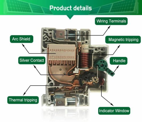 Fungsi breaker pada prinsipnya untuk memutus sirkuit dari/ke sumber daya, dalam hal ini rangkaian modul fotovoltaik dan beban. Selama terjadi pemutusan, kontak internal akan terlepas dan busur listrik akan terjadi saat arus melintas di celah udara. Pada periode waktu ini, busur listrik harus dipadamkan untuk menghentikan aliran arus yang melalui sirkuit . Ketidakmampuan mcb ac ada disitu, bahkan mcb ac bisa terbakar jika voltase dan A tinggi terjadi.