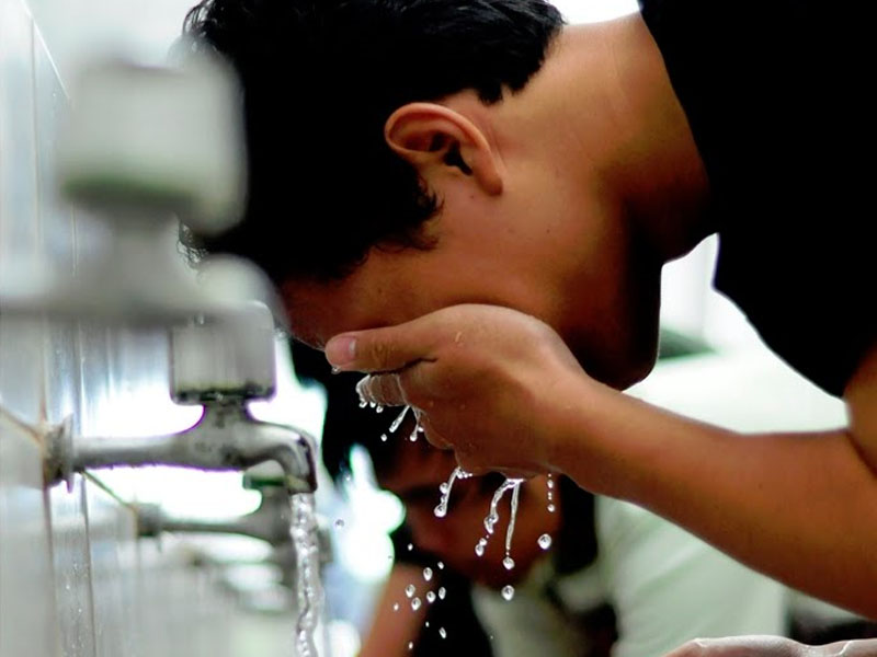 2. Bersuci dari hadats besar dengan cara ghusl (mandi) atau tayamum bila tidak ada / memungkinkan menggunakan air.